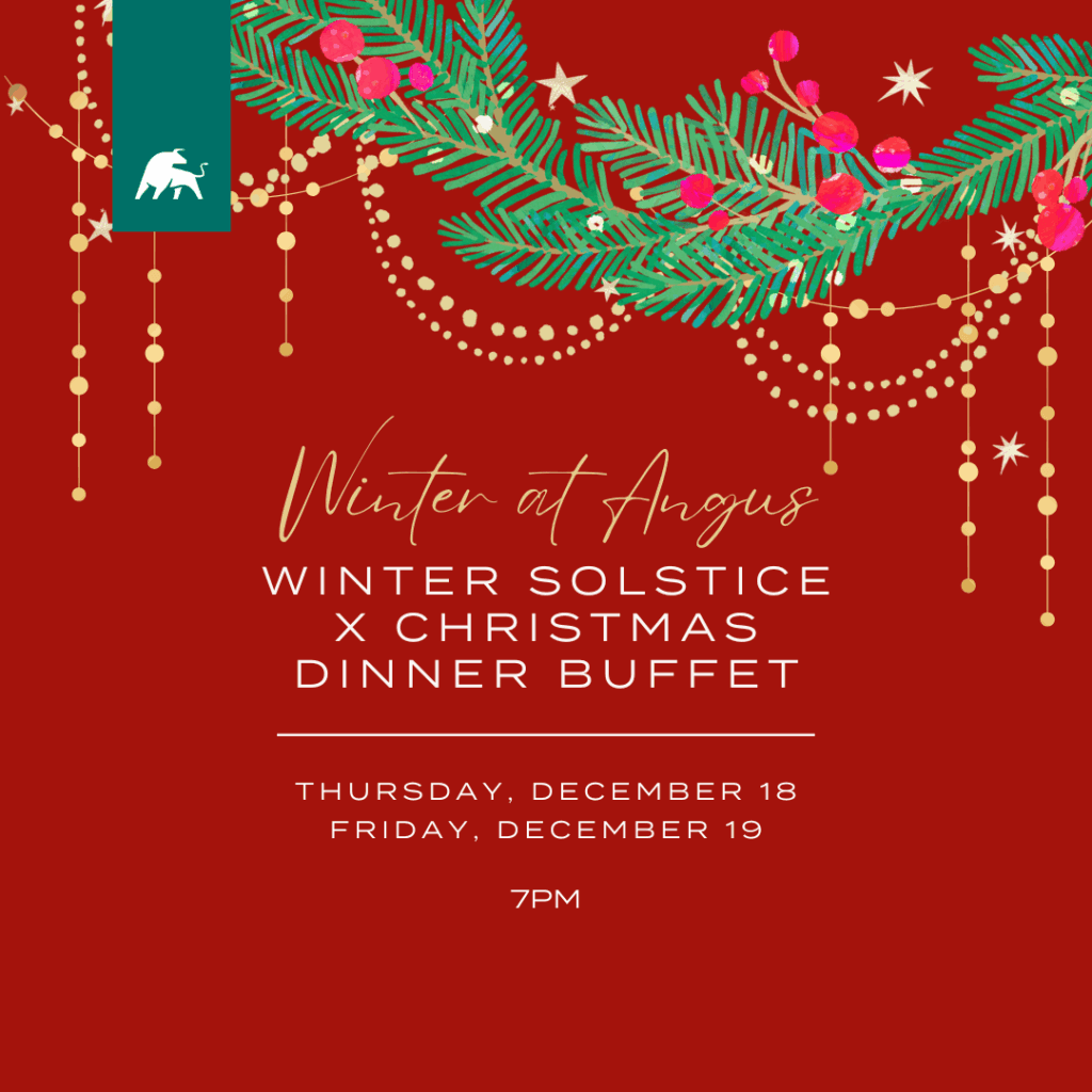 Celebrate the magic of the season with our Christmas x Winter Solstice Dinner Buffet! Indulge in a festive feast featuring holiday favourites, seasonal delicacies, and warm winter treats, all set against the cozy ambiance of Angus Glen.